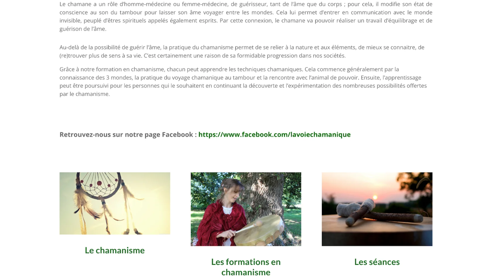 La voie chamanique propose des initiations et formations au chamanisme ainsi que des séances.