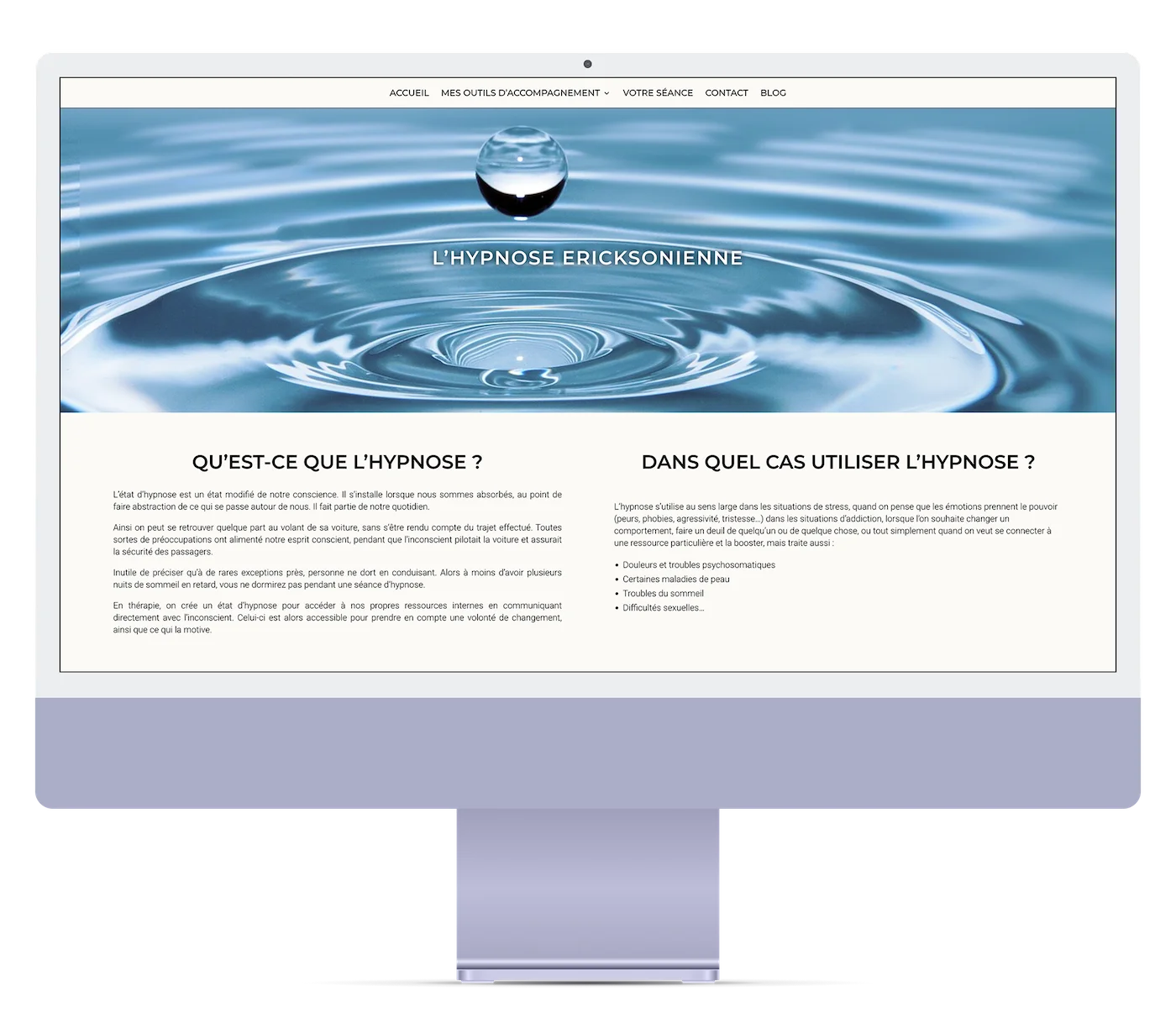 - Fluidifier l'expérience utilisateur (UX) : Repenser l'architecture de l'information pour que les futurs clients comprennent intuitivement l'offre (Hypnose, PNL, traumatismes) et naviguent sans friction.